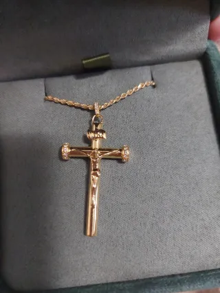 Nuevo. Elegante collar de acero inoxidable 316L con baño de oro. - Colgante en forma de cruz, adornado con circonitas en talla baguette de gran brillo. - Cadena fina ajustable. - Presentado en cajita de regalo. - Gran calidad NO pierde el color. NO hago envíos, recoger por mi zona.