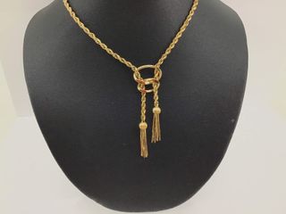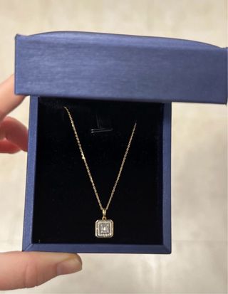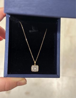 Elegante collar bañado en oro, ideal para complementar cualquier atuendo. Es una pieza sin usar, lista para estrenar. - Diseño delicado con colgante. - Cadena fina y ajustable.