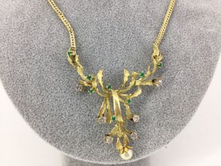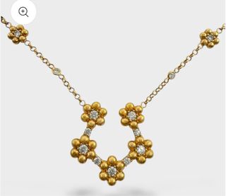 Elegante collar con un diseño de flores y detalles de diamantes. - Elaborado en oro. - Motivos florales. - Acentuado con pequeños diamantes.