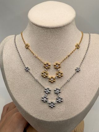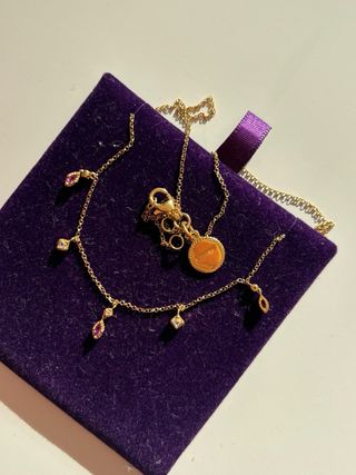 Dos anillos ajustables, dos collares y una pulsera. Esta todo sin estrenar. En su envoltorio. - Acero inoxidable con baño en oro 18 k. - Resistentes al agua El precio es por unidad. Si se quiere todo el conjunto hago rebaja.