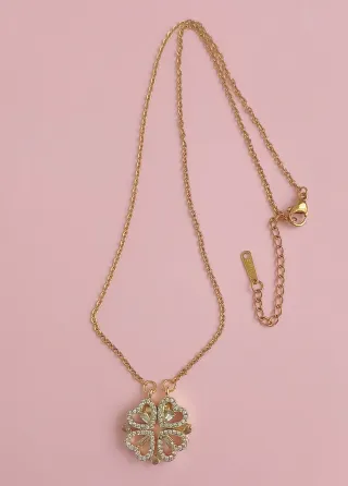 Collar Trébol Corazón 2 en 1 Baño Oro