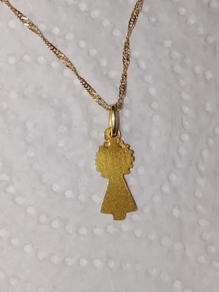 Collar con colgante de la Virgen del Pilar. - Fabricado en oro de 18 quilates. - Diseño detallado del símbolo de la Virgen del Pilar.
