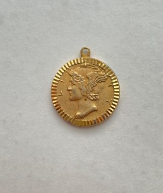 Moneda dorada convertida en medalla con la figura de Liberty, inspirada en el dólar de Estados Unidos. - Diseño detallado de la cabeza de Liberty con alas. - Borde con estrías. - Incluye un pequeño aro para colgar. medalla colgante cadena collar cruz oro plata dorado plateado arte religioso santo virgen cristo