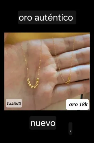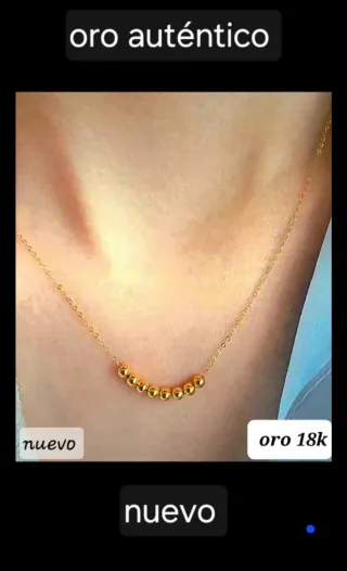 Collar 18 kilates con 8 bolitas de oro Collar de oro auténtico de 18 kilates, compuesto por 8 bolitas lisas de oro macizo de 18 kilates. Mide 45 cm y llegará precioso, cuidadosamente envuelto. (Os pido porfavor que no me preguntéis si es oro auténtico. Si pongo en la descripción que es oro 18k es porque realmente es oro 18 kilates).