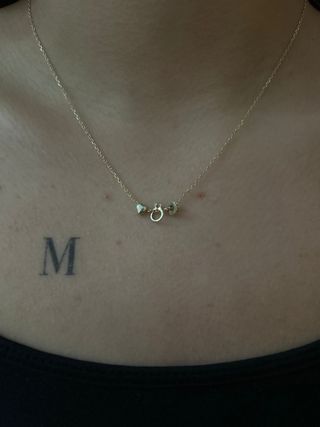 Elegante collar con un diseño delicado y un baño de oro. Una pieza sutil para complementar tu estilo. - Acabado brillante. - Cadena fina. Precio negociable
