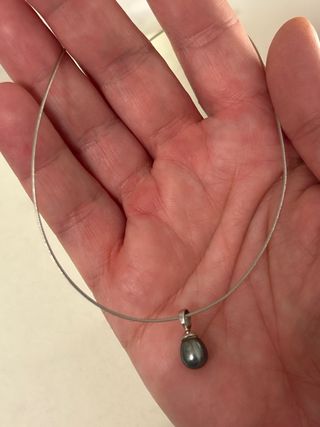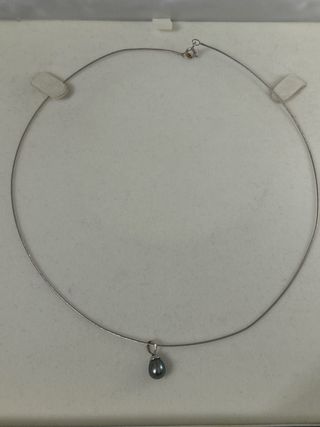 Collar de oro blanco de 18kt con Perla tahitiana. La cadena mide 42cm y pesa 2,33g y el colgante pesa 0,78g