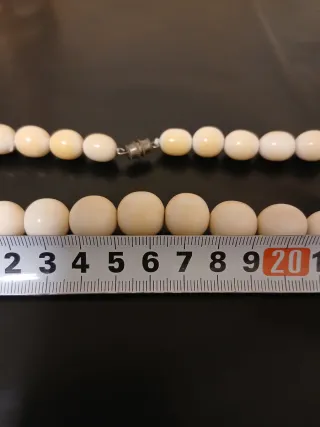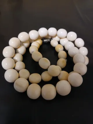 Collar tallado a mano. Cuentas de material noble. Color marfil hueso plata oro