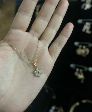 Elegante collar con un delicado colgante en forma de estrella adornado con pequeñas circonitas brillantes. La cadena es fina y de color dorado. - Colgante con diseño de estrella. - Detalles de circonitas. - Cadena fina. - Chapado en oro, no oxida y es hipoalergénico