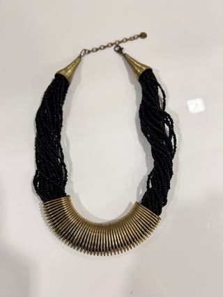 Collar en dorado envejecido con detalle de bolitas pequeñas en negro. Cadena con eslabones regulable a diferentes alturas. 💎Puedes hacer lotes con otros de mi perfil para tener descuento.