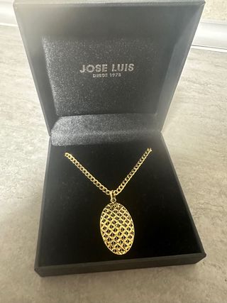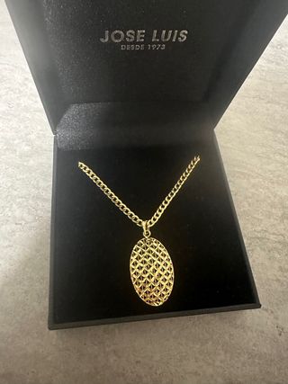 Elegante collar de oro 18 quilates con colgante ovalado. - Diseño intrincado en el colgante. - Cadena de eslabones curvos. pesa 7 g se puede virificar en alguna joyeria antes de comprar sin problema