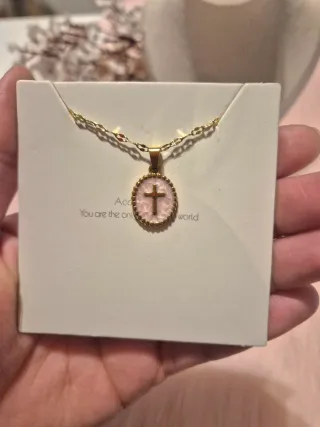 Elegante collar con un colgante ovalado que presenta una cruz. - Baño de oro. - Diseño de cruz en relieve. - Material acero inoxidable. - Dos colores rosa y rojo. 🛍Envios durante el mismo dia. 🌴🥥Probabilidad de entregas en Madrid 📍 💫Todo en accesorios *TODO* Joyería de acero, joyería de lujo, joyería de plata, bisuteria fina, chapados en oro y plata.