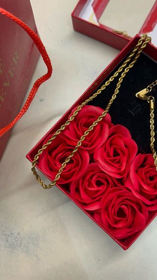 Una pieza sencilla pero muy elegante, ideal tanto para sorprender a alguien especial como para completar tu look diario. ✨ Se trata de un collar de 45 cm con sello de oro de 18k laminado, con un brillo muy bonito y un acabado fino que destaca mucho al llevarlo puesto. Está totalmente nuevo, sin uso. Su largo de 45 cm hace que quede ajustado al cuello, favoreciendo mucho y aportando un toque discreto, elegante y sofisticado, perfecto para cualquier ocasión.