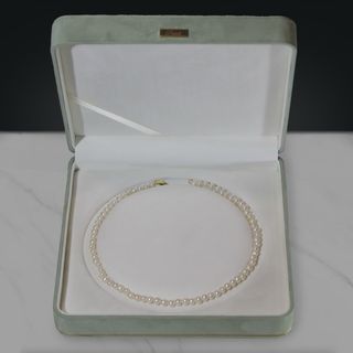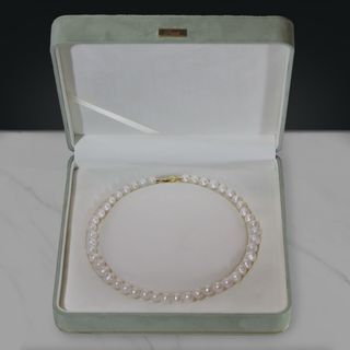 Elegante collar de perlas cultivadas redondas. - Cierre de Plata bañado en Oro. - Incluye Estuche.