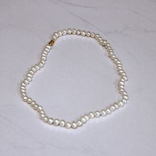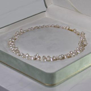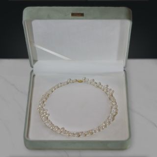 Elegante collar de perlas con un delicado brochefe plata chapado en oro. Mide 45 cm. de largo y el estuche está incluido en el precio. - Perlas de forma irregular. - Broche chapado en oro.