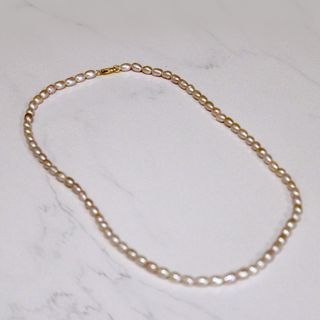 Elegante collar de perlas cultivadas con un diseño único estilo ‘arroz’. - Perlas Cultivadas Ovaladas de estilo arroz. - Cierre con baño de oro. - Incluye Estuche.