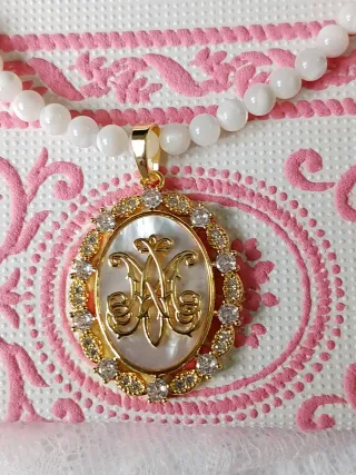 Collar y medalla Avemaría nácar y oro