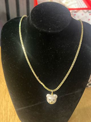 Collar con colgante de osito con baño de oro de 14 quilates. - Baño de oro de 14K. - Colgante con diseño de osito. - Cadena tipo soga. - Largo de 45 cm.