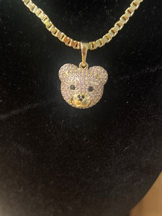Collar con colgante de oso, laminado en oro de 14 quilates y con una longitud de 45 cm. - Diseño detallado de oso. - Cadena tipo Franco. - Cierre de mosquetón.