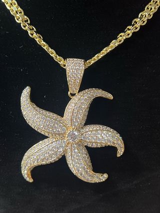Collar de 50cm con colgante de estrella de mar, chapado en oro de 14 quilates. El colgante está adornado con circonitas y detalles de colores. - Largo del collar: 50 cm - Material del colgante: Circonitas y metal - Acabado: Chapado en oro de 14k