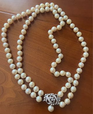 Collar Vintage Perlas 3 Vueltas con Diamantes