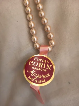 Elegante collar de perlas de la marca Corin Manacor. - Perlas de color rosa pálido. - Cierre dorado. - Incluye etiqueta original. - Fabricado en España.