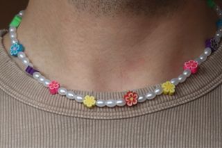 Collar perlas y flores multicolor