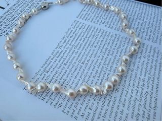 Elegante collar de perlas Akoya japonesas barrocas. Cada perla mide entre 6 y 6.5 mm, creando un diseño único y sofisticado. Collar de perlas Akoya naturales (Japón) en forma barroca, cuidadosamente seleccionado. ✨ Características: • Tipo de perla: Akoya (agua salada) • Origen: Japón • Tamaño: 6–6,5 mm • Forma: Barroca natural • Lustre: AAA (alto brillo) • Longitud: 40–43 cm (16”–17”) • Cierre: Plata de ley 925 • Estado: Nuevo Las perlas Akoya son conocidas por su brillo intenso, elegancia y calidad superior, mucho más exclusivas que las perlas de agua dulce.