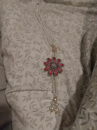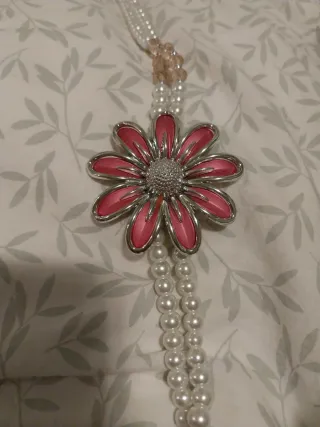 Collar de perlas con flor rosa