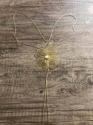 Elegante collar con forma de "Y" con un diseño de flor.Acabado en tono dorado.Detalle de finos hilos en la flor con perla.Cadena fina y larga. Cierre con mosquetón. Longitud collar cerrado 50cm, flor 7cm. Nuevo 👉🏻 SÓLO HAGO ENVÍOS 👈🏻📢 Hago descuento por la compra de varios artículos, échale un vistazo a mi perfil, más ropa femenina 👗👠👒