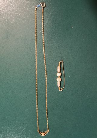 Collar de perlas y cadena dorada