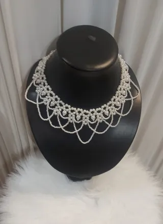 Elegante collar de perlas blancas, perfecto para complementar cualquier atuendo. - Diseño delicado y elaborado. - Perlas de tamaño uniforme.