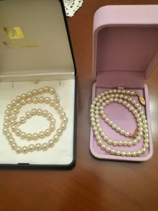 Nuevo. Perlas de 5mm y cierre de oro. Incluye todos los elementos originales: el collar, la caja, la bolsa de cartón, la bolsita de terciopelo, la garantía la toallita de tela y la tarjeta.
