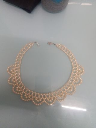 preciosa gargantilla de perlitas de distinto tamaño. color blanco roto. es muy antigua pero se conserva muy bien, no tiene ninguna perla desgastada ni pelada. mide 45 cm de larga y el broche estay bien conservado