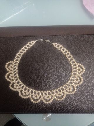 Se vende precioso collar largo,dorado con adorno de racimo con perlas .En perfecto estado. Hago lotes