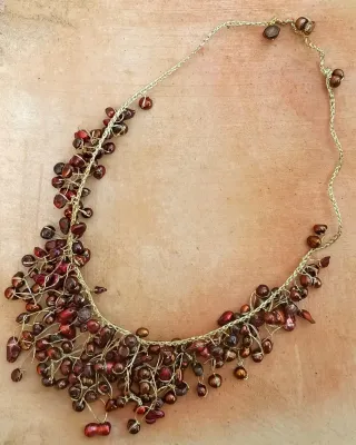 Collar perlas naturales rojizo