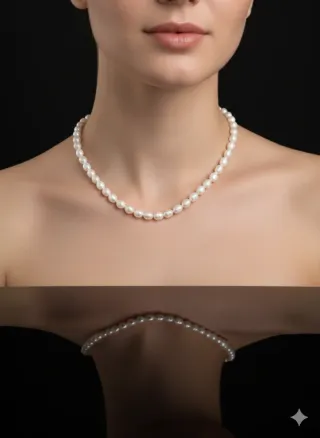 Collar perlas naturales arroz plata