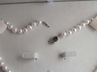 Elegante collar de aprox 7mm y pendientes de perlas naturales de agua dulce. Un accesorio clásico que aporta un toque de distinción. - Perlas de agua dulce. - Cierre de plata. Muy buen regalo para los Reyes