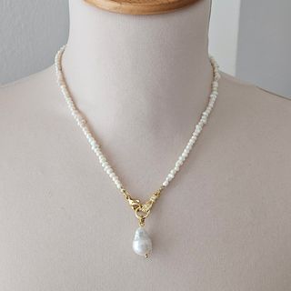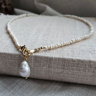Collar de Mini Perlas Naturales y Colgante Mano
