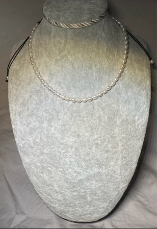 Collar corto unisex (hombre/mujer) elaborado con perlas naturales cultivadas. Diseño minimalista y actual, perfecto para combinar con cualquier look. • Perlas naturales cultivadas • Largo aproximado: 40 cm • Ajustable • Apto para hombre y mujer • Color: blanco marfil con cordón negro • Estado: muy bueno Ideal para regalo o para uso diario, muy ligero y cómodo.