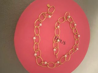 Elegante collar de la marca Tous con una perla de agua dulce. Es de acero inoxidable 316, no oxida , se puede mojar. Ideal para el día a día. Mide unos 45 cm más alargador. Lo doy solo con bolsita de terciopelo y caja que protege sin marca para el envio. - Diseño delicado con colgante de oso. - Perla natural de agua dulce.blanca - Cadena dorada. Puedes verlo y probarlo en persona o pedir con envío.