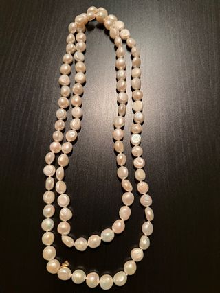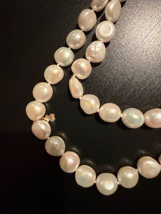 Collar de perlas de río de 6 mm , con cierre de mosquetón y NIÑA marca TOUS , largo 40 cms . Peso 21,70 grs ] 📍 Nos puedes encontrar en la calle Urzaiz 90 de Lunes a Sábado de 10 a 20:30. - [ ] ☎️ sin o lo prefieres puedes llamarnos al 986494936 - [ ] ✨3 años de garantía en todos nuestrosproductos. - [ ] 🚚 Hacemos envíos a través de nuestra páginaweb com” y en Wallapop. - [ ] 💻 Los productos sólo incluyen los accesorios que se ven en las fotografías E0468870AR