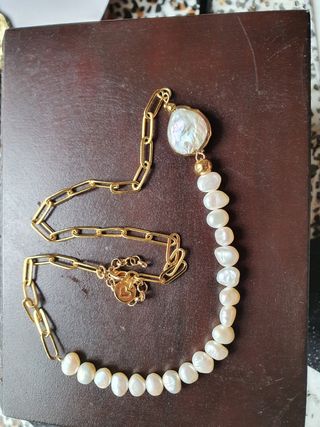 Elegante collar vintage con un diseño único de perlas de arroz. El cierre es de seguridad - Perlas de arroz. - Cierre chapado oro 18k