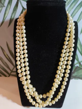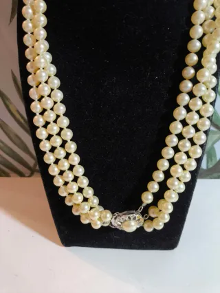 Elegante collar de tres vueltas con perlas cultivadas. - Diseño de triple vuelta. - Perlas de tono marfil y blanco. En su caja original de perlas orquídea de Mallorca . Broche de seguridad en plata de alta calidad y estilo . Una pieza única vintage