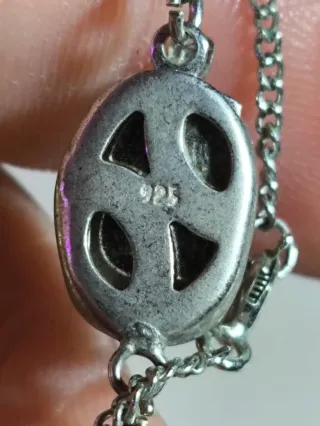 Elegante collar rígido con un llamativo colgante. - Diseño moderno y minimalista. - Colgante ovalado con gema verde. - Cadena fina y plateada.