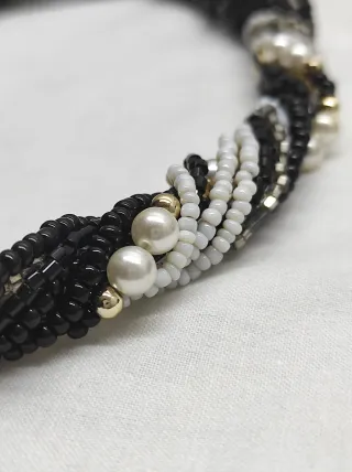 Elegante collar de perlas con un diseño clásico y sofisticado. - Perlas de color blanco y negro. - Cierre metálico.