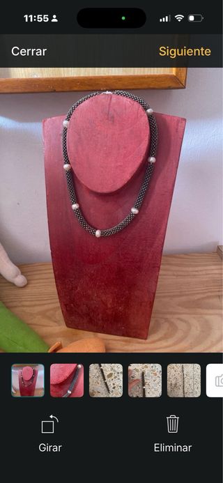 Se vende collar de oro amarillo de 18 quilates macizo con Perlas de segunda mano. 9 Perlas de rio alternadas con la cadena de oro. Peso: 3.4 gramos. Longitud: 50.5 cm. Anchura: 1.2 mm. Grosor: 0.3 mm. Cierre: Mosquetón. Tipo de eslabón: Alterna Forzada. Joya de oro de segunda mano en perfecto estado sin marcas de uso (ver fotos). 1 año de garantía. ¡Reserva ahora con facilidad eligiendo nuestro "Pago a Plazos" y disfruta de la comodidad y flexibilidad financiera que necesitas! Consúltanos en cualquiera de los canales habituales. Envíos en 24h. Código interno: 113951