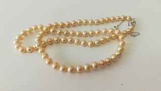 Elegante collar de perlas de estilo antiguo. Un accesorio clásico que añade un toque de sofisticación. 60 cm - Perlas de color beige con reflejos dorados. - Diseño atemporal.