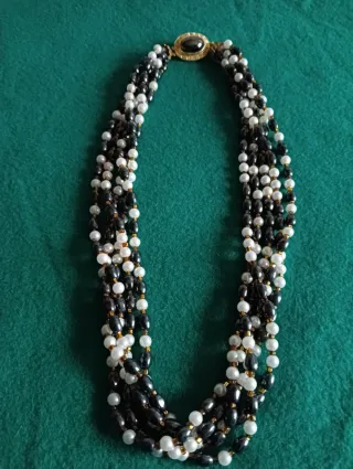 Collar Vintage Perlas Cultivadas y Cuentas Negras