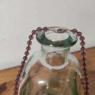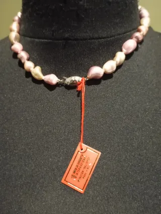 Elegante collar de perlas con un acabado brillante. - Perlas de color morado. - Cierre y cadena de plata.