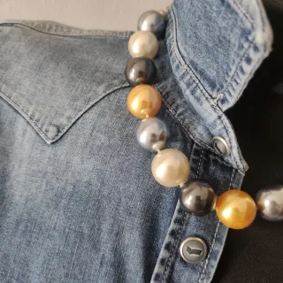 Elegante collar con perlas de Mallorca. - Diseño con perlas grandes. - Combinación de tonos gris,mostaza